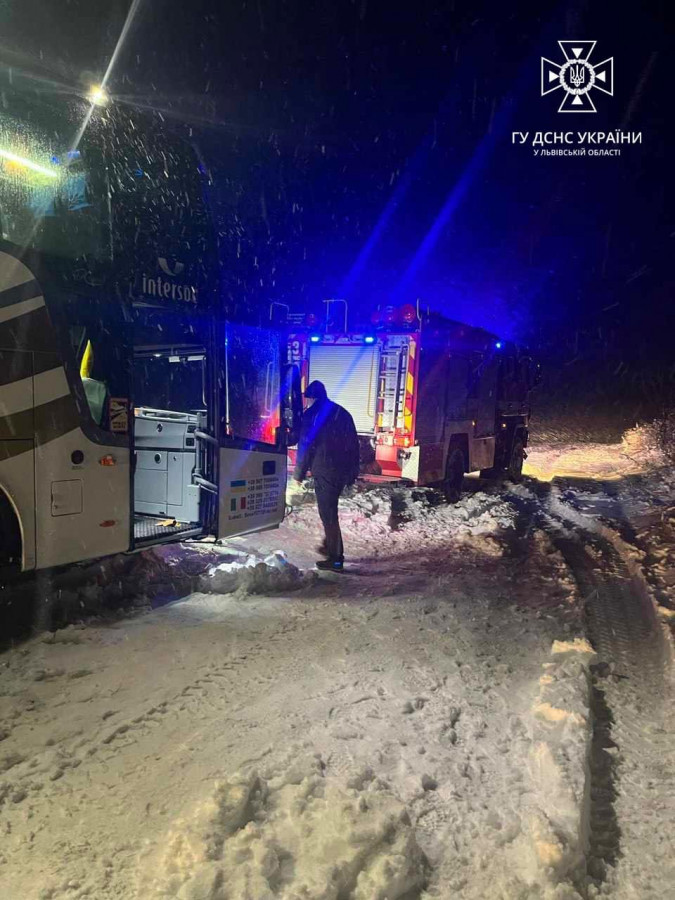 2 грудня о 01:59 до рятувальників надійшло повідомлення про те, що поблизу с. Бердихів Яворівського району на автодорозі застряг автобус "Van Hool". Внаслідок складних погодних умов автодорогу, якою рухався автобус засипало снігом.
