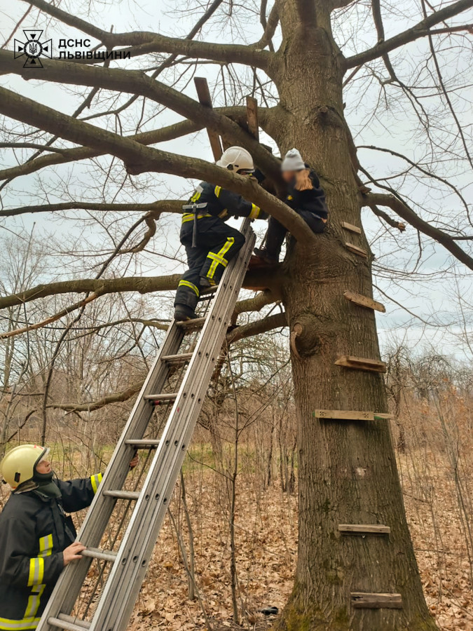 На Львівщині рятувальники зняли дитину з дерева, яка не могла самостійно злізти