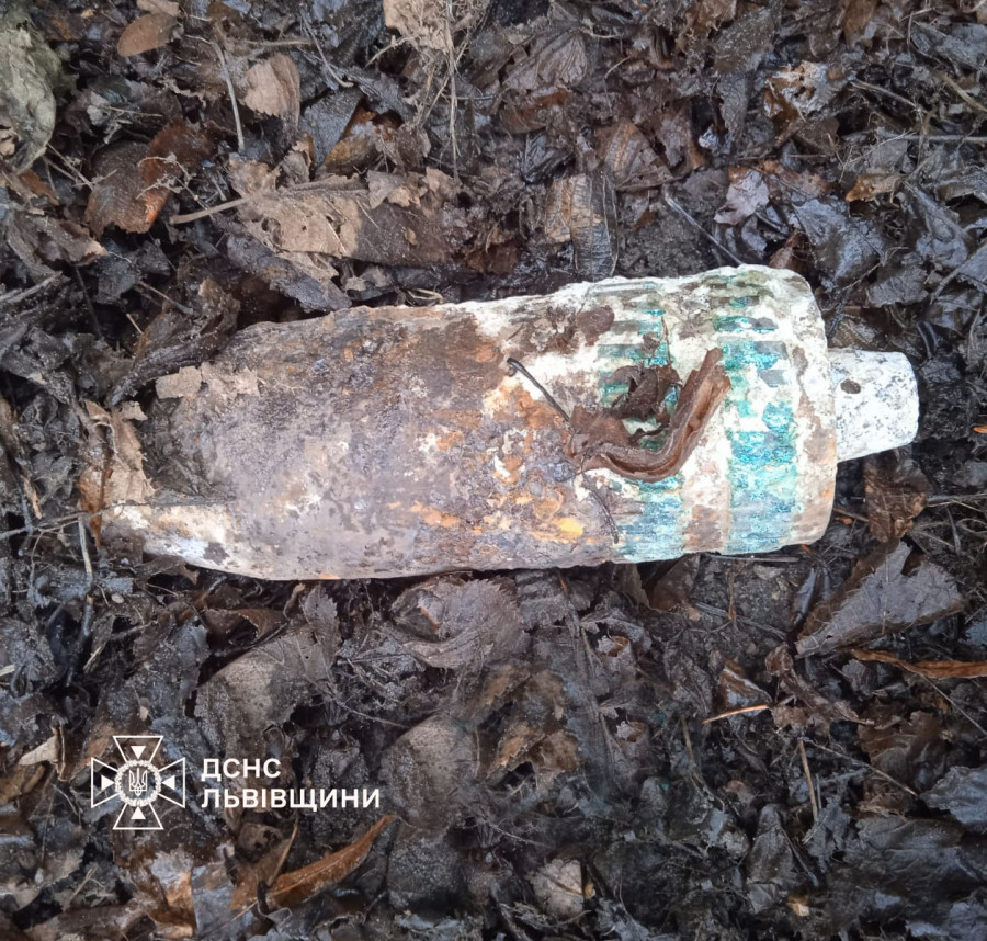 Цей, застарілий боєприпас був виявлений в с. Добросин Львівського району. На небезпечну знахідку, на власному подвір’ї, натрапив чоловік, саджаючи виноград в кількох метрах від свого будинку.