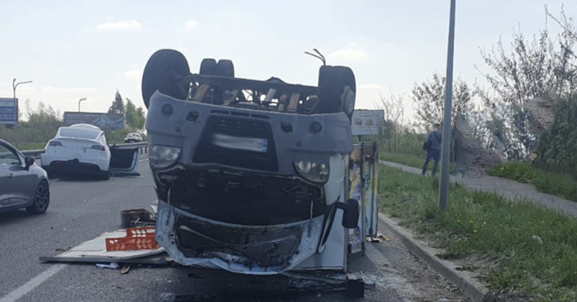 Водій вантажівки "ГАЗ-3302" не впорався з керуванням, зіткнувся з двома легковиками — "Tesla" та "ВАЗ 21013" — після чого його авто перекинулося на дах.