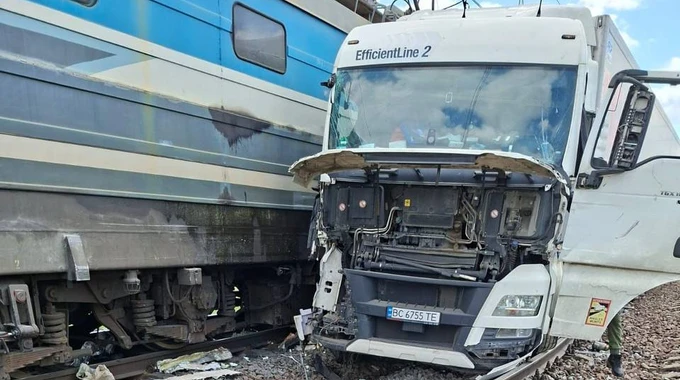 На регульованому залізничному переїзді на Львівщині зіткнулися пасажирський поїзд і вантажний автомобіль.