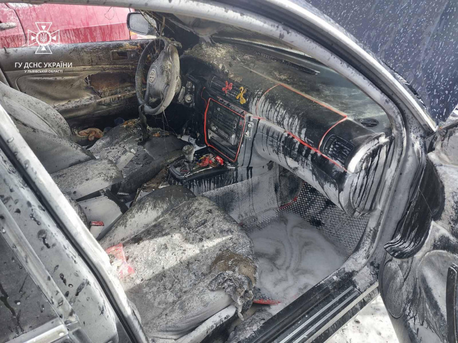 На момент прибуття вогнеборців до місця події, з салону автомобіля вибивався густий чорний дим, була загроза перекидання вогню на поруч припарковані автомобілі.