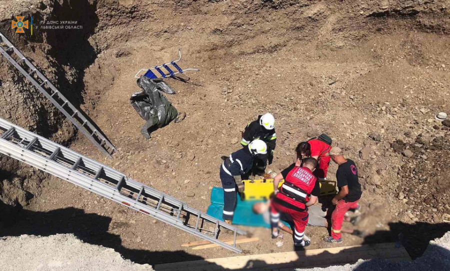 На Львівщині врятували чоловіка, який потрапив у земляну пастку на глибині 3 метрів