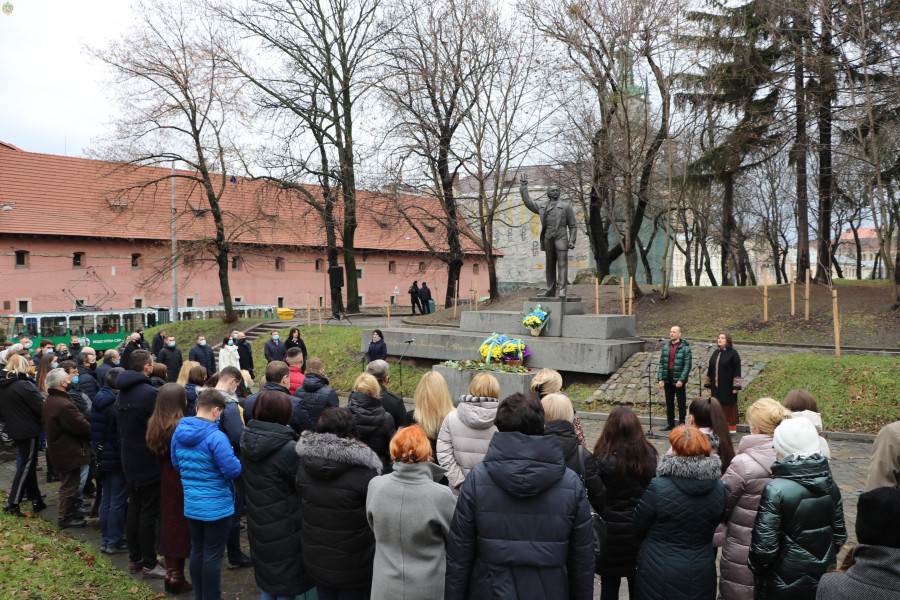 Вшанувати пам'ять біля пам’ятника видатному українцеві зібралося керівництво Львівської обласної ради, ОДА, депутати, громадськість.