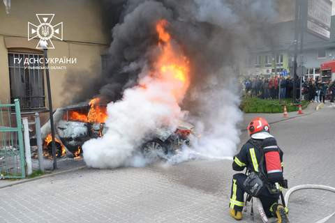 "На момент прибуття вогнеборців до місця події автомобіль був повністю охоплений вогнем. Існувала загроза перекидання вогню на будівлю біля якої був припаркований автомобіль. О 10:29 пожежу локалізовано та о 10:33 ліквідовано", – зазначають у повідомленні.
