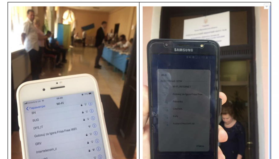 На одній з дільниць округу №84 (Івано-Франківська область, м.Тисмениця) вранці зафіксували Wi-fi мережу з агітацією за кандидата мажоритарника від партії “Слуга народу” Ігоря Фріса.