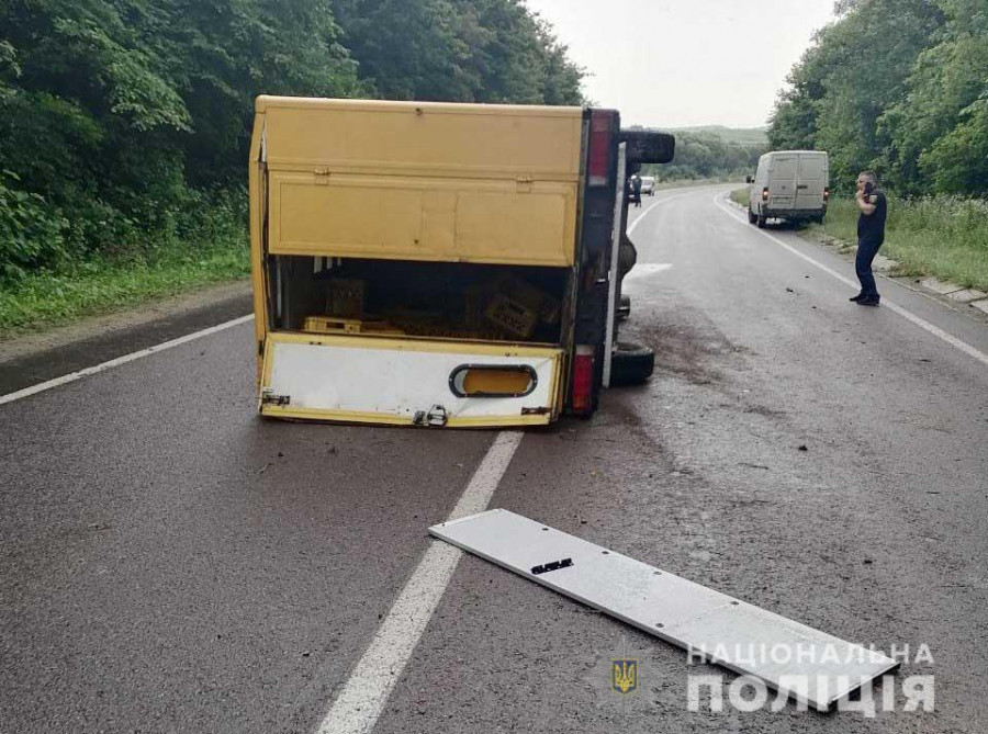 Поліцейські з’ясували, що внаслідок перекидання автомобіля «Mercedes-Benz», який перевозив хлібобулочну продукцію, загинув водій. Його особу встановлюють. На момент ДТП стан дорожнього покриття був слизький через дощову погоду.