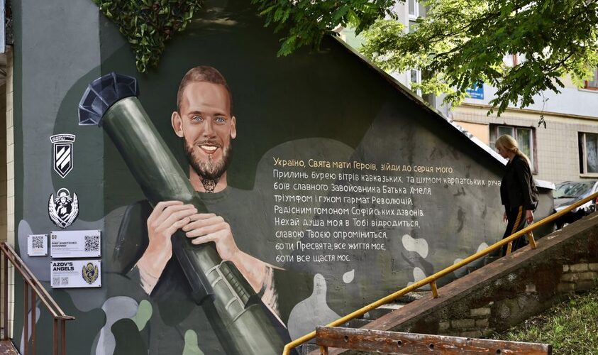 На стінописі є два зображення Олега, шеврон 3-ї штурмової бригади, в якій хлопець служив, емблема патронатної служби «Янголи Азову», яка допомогла захиснику після поранення, та текст молитви націоналіста. Також є два QR-коди: зчитавши перший, можна почути молитву націоналіста, в другий перекидає на рахунку, куди можна донатити.