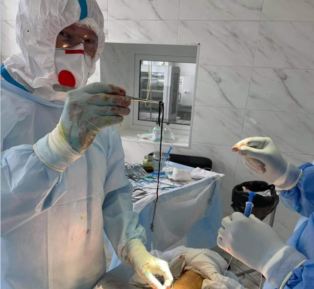 Операцію провели місцеві хірурги на чолі з обласним судинним хірургом Біднюком Романом Миколайовичем. Із руки чоловіка вийняли 15-сантиметровий тромб.