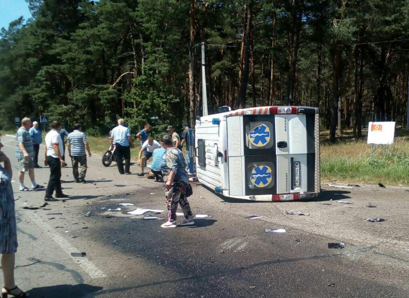 На Волині автомобіль швидкої медичної допомоги, що рухався з проблисковими синіми маячками, перевернувся внаслідок зіткнення з вантажівкою. У результаті дорожньо-транспортної пригоди загинув пацієнт, ще троє осіб – у важкому стані.