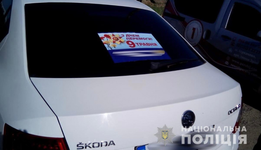 Сьогодні, 9 травня, близько 9.05 до поліції надійшло повідомлення про виявлення наліпок із зображенням комуністичної символіки на автомобілях, припаркованих по вулиці Сороча у Мукачеві.
