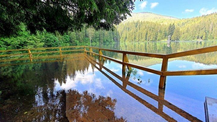Як видно зі світлин, що їх опублікував у соціальній мережі Фейсбук Національний природний парк "Синевир", рівень води у водоймі наразі - суттєво вищий від норми, пише Закарпаття. Онлайн.