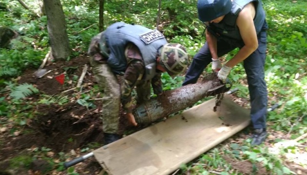 "15 червня групою піротехнічних робіт аварійно-рятувального загону спецпризначення завершено роботи по знищенню 27 авіаційних бомб ФАБ-50, котрі були виявлені в лісовому масиві поблизу с. Ворочево Перечинського району", - йдеться у повідомленні.