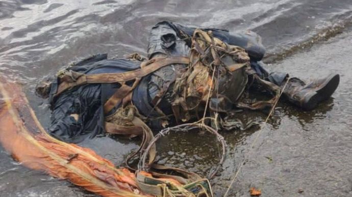 Прізвище Манкишев значиться на знайденій на тілі формі пілота. На фото також видно парашут.