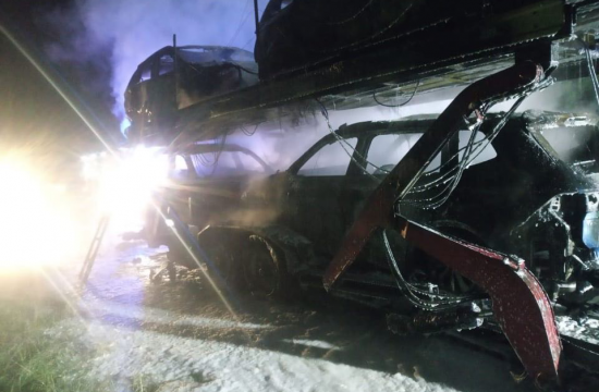 На момент прибуття вогнеборців до місця виклику, вогонь повністю охопив автомобілі на лафеті.
