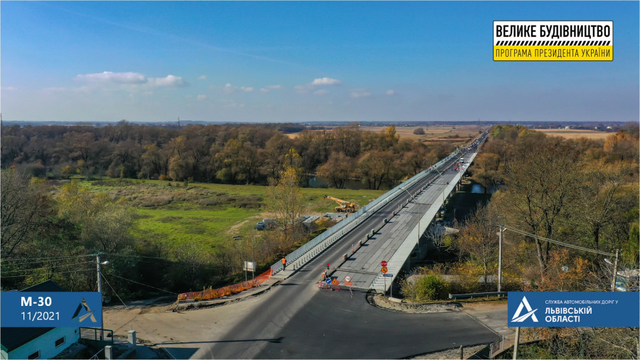 Нагадаємо, в рамках реалізації Національної програми Велике будівництво створюємо найдовший маршрут, загальною довжиною майже 1400 км. В межах Львівської області ремонтуємо дорогу М-30 Стрий – Ізварине на всій протяжності від Стрия до межі Івано-Франківської області".