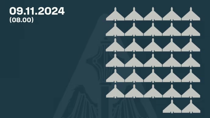 Станом на ранок 9 листопада силами ППО підтверджено збиття 32 ворожих БпЛА.