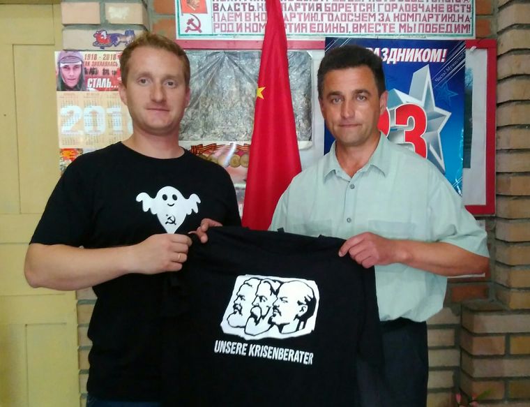 Фото - Едуард Матюха (праворуч) під час презентації книги секретаря Компартії «ДНР» Станіслава Ретинського, Горлівка, 28 червня 2019 року, сайт Компартії «ДНР»