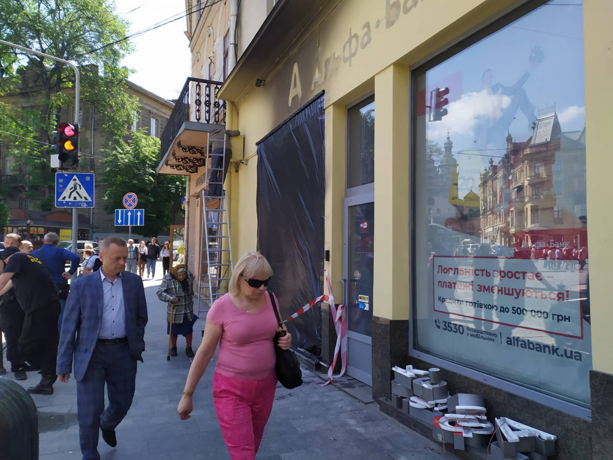 Вночі проти вівторка, 28 травня, у центрі Львова підпалили приміщення одного з банків, повідомили у Відділ і комунікації поліції Львівської області.