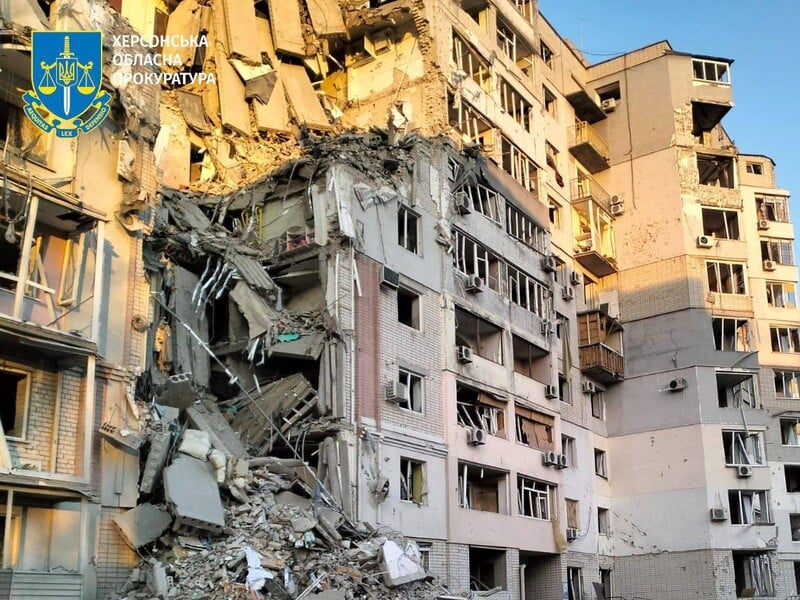 Російські військові використовували керовані авіабомби для удару по Херсону. Зруйновано 15 квартир в одному з під'їздів десятиповерхівки, вибито шибки у 80 оселях. Оперативний штаб працює на місці теракту, залучено понад 120 осіб та 35 одиниць техніки для розбору завалів і пошукових робіт, оскільки під уламками можуть залишатися люди.