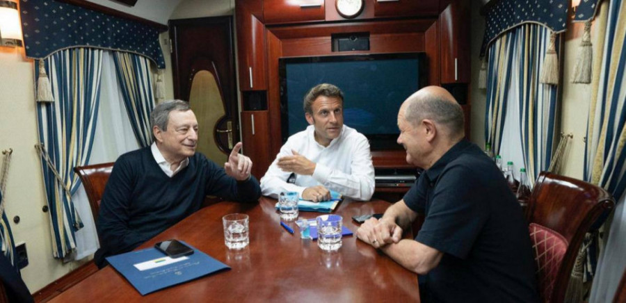 "Після зустрічі з Володимиром Зеленським в президентському палаці в четвер глави держав Німеччини, Італії, Румунії та Франції висловилися за "негайний" статус кандидата на членство в ЄС для України", - йдеться у повідомленні.