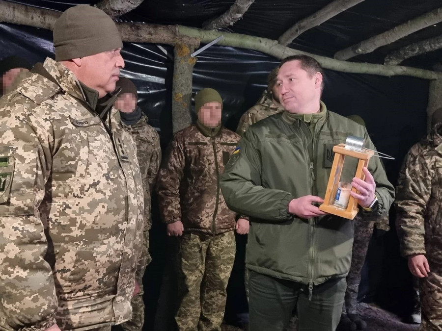 Їхньому командиру, полковнику Валерію Курку, Козицький вручив подяку від Львівської ОВА, а також передав Вифлеємський вогонь миру, генератори і понад тисячу комплектів зимової форми та взуття.