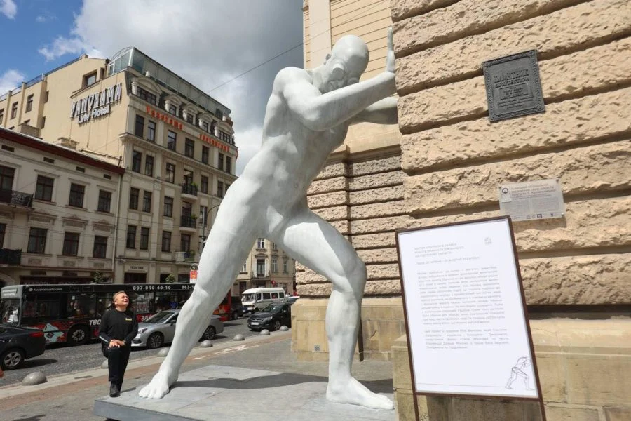 Як відзначили в міськраді Львова, скульптуру гіганта біля Львівської опери встановили в рамках Lviv Urban Forum. Також там додали, що скульптура біля Оперного театру буде кілька тижнів.