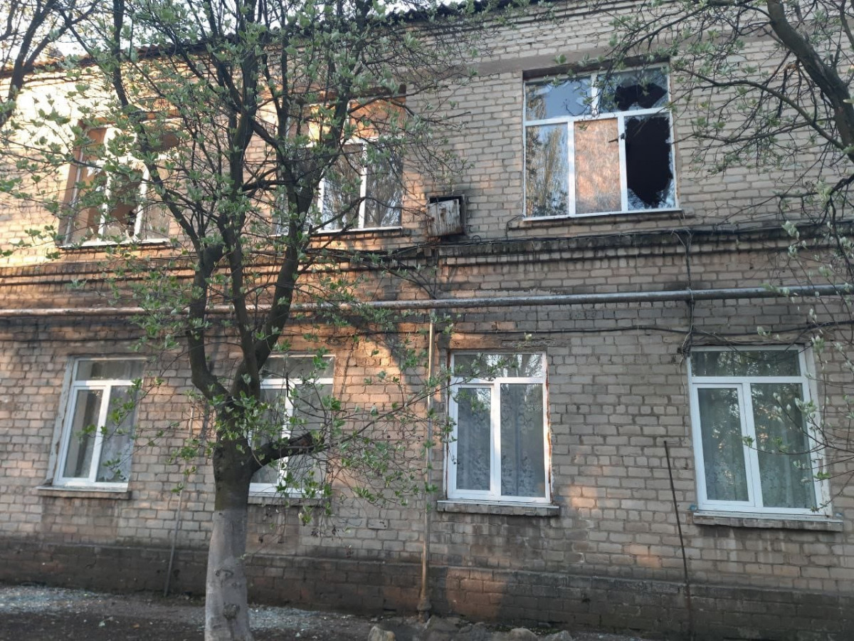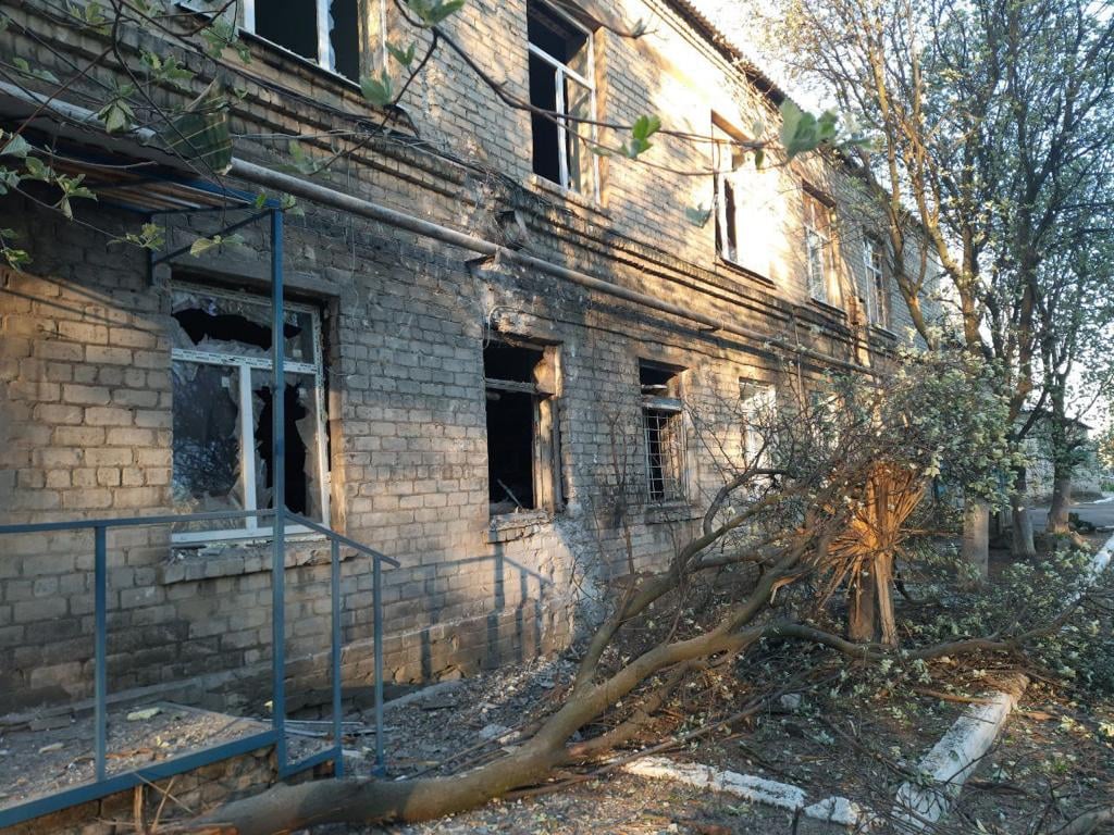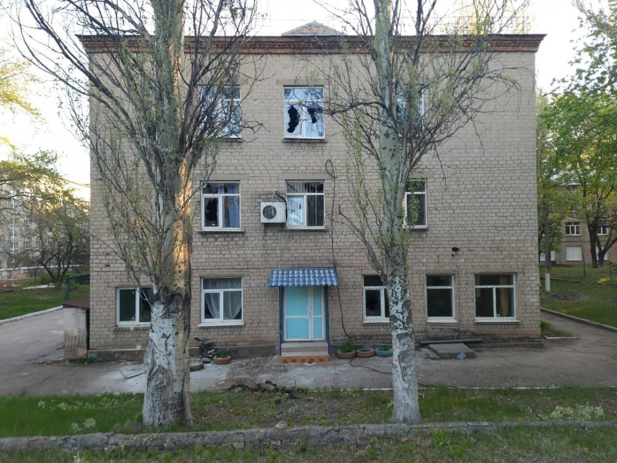 Вчора о 23.30 порушуючи усі норми гуманітарного права російсько-терористичні війська здійснили обстріл м. Красногорівка. Внаслідок обстрілу пошкоджена лікарня, яка знаходиться за адресою: вул. Нахімова 1а, а також сусідні будівлі які залишились без світла.