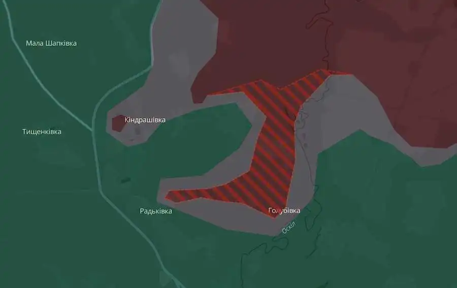 Згідно з їхньою інтерактивною картою, в Харківській області окупанти розширили зону контролю в населеному пункті Голубівка та просунулися в напрямку Радьківки — обидва населені пункти розташовані на південь від окупованої Дворічної на правому березі річки Оскіл.