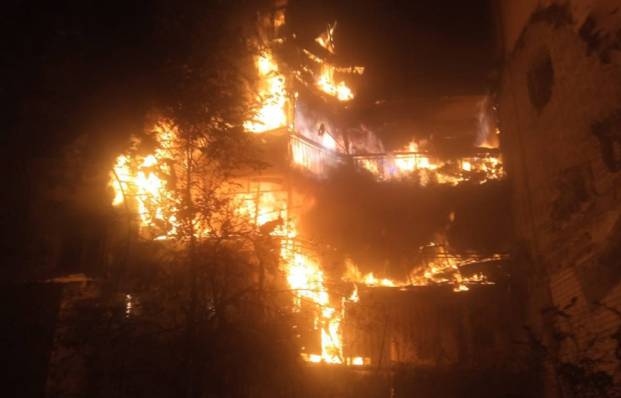 Під час гасіння пожежі, спричиненої ворожим ударом, постраждали двоє рятувальників − їх доставили до лікарні із загальним перегріванням тіла.