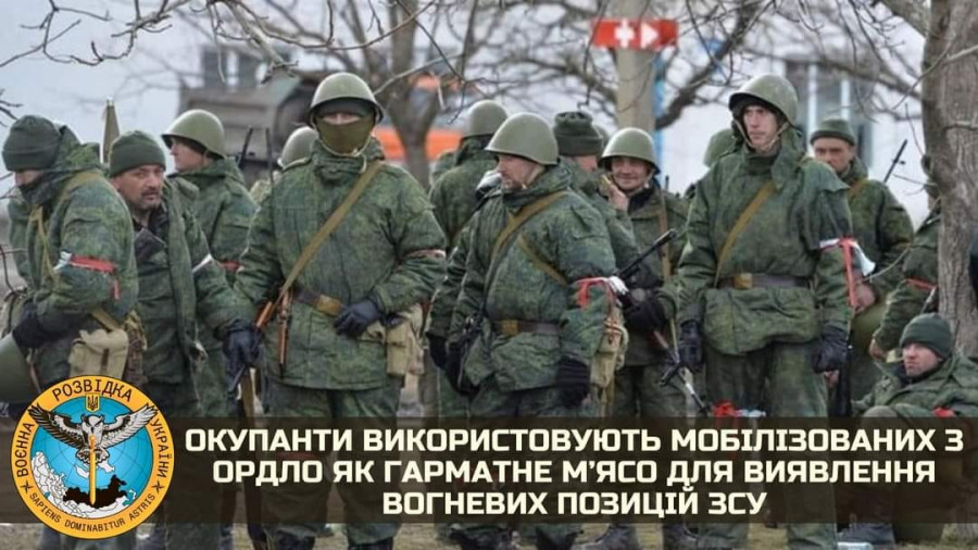 Зі слів самих «мобілізованих», російське командування використовує їх в якості «живця». Тобто, як передовий ешелон розвідки боєм. Підрозділи відправляють на військових автомобілях до лінії зіткнення, ігноруючи високі втрати. І таким чином визначають розташування вогневих позицій ЗС України.