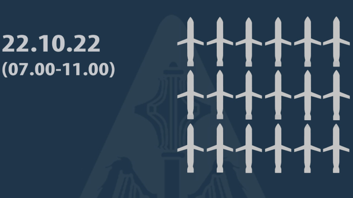 "22 жовтня о 7.00 окупанти здійснили масований ракетний обстріл території України. Атаковано об’єкти критичної інфраструктури в різних областях держави. Ворог атакував щонайменше десятьма літаками стратегічної авіації Ту-160 та Ту-95 з району Волгодонська Ростовської області. Випущено 17 крилатих ракет Х-101 (Х-555). Крім того, рашисти атакували із кораблів з акваторії Чорного моря крилатими ракетами "Калібр". Усього – 16 пусків", – йдеться у повідомленні.