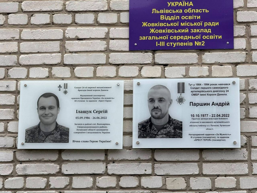 На фасаді Жовківської школи №2 урочисто відкрили меморіальні дошки на честь воїнів Сергія Ілащука та Андрія Паршина. На заході були присутні рідні та близькі загиблих, бойові побратими, представники школи та громадськості.