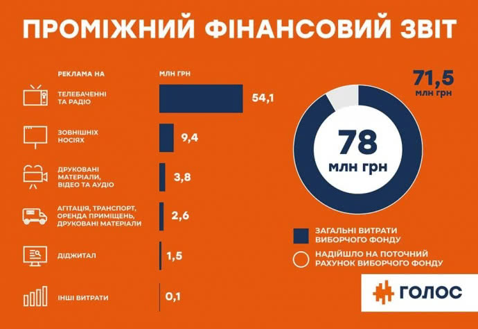 Загальні витрати виборчого фонду становлять 71,5 мільйона гривень.
