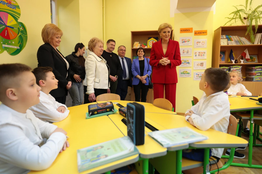 З офіційним візитом на Львівщині перебуває Перша леді Польщі Агата Корнгаузер-Дуда. У п’ятницю, 21 квітня, вона разом з очільником Львівської ОВА Максимом Козицьким відвідала Мостиський ліцей №3 імені Святої Королеви Ядвіги. Там діти навчаються як і українською, так і польською мовами.
