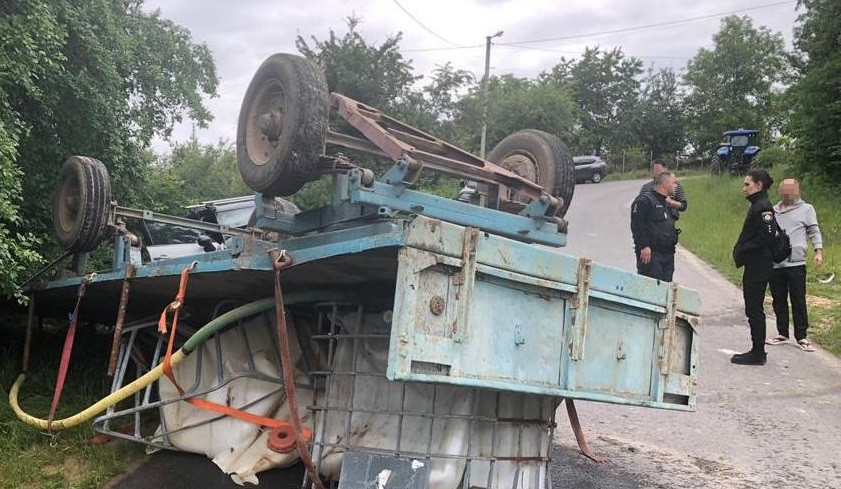 Аварія трапилася у четвер, 23 червня, близько 8:00 ранку. На підйомі дороги від трактора New Holland, яким керував 30-річний місцевий мешканець, відірвався причіп та в’їхав у автомобіль Mini Cooper під керуванням 68-річного львів’янина.