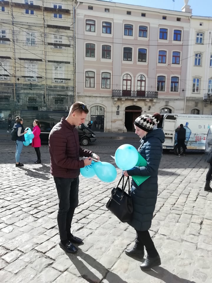 Сьогодні, 2 квітня, Львів долучився до Міжнародного дня інформування про аутизм. Зокрема, на пл. Ринок фахівці Львівського міського центру соціальних служб для сім’ї, дітей та молоді роздавали блакитні кульки з метою підтримки сімей, де виховуються діти з аутизмом, передає прес-служба міськради.