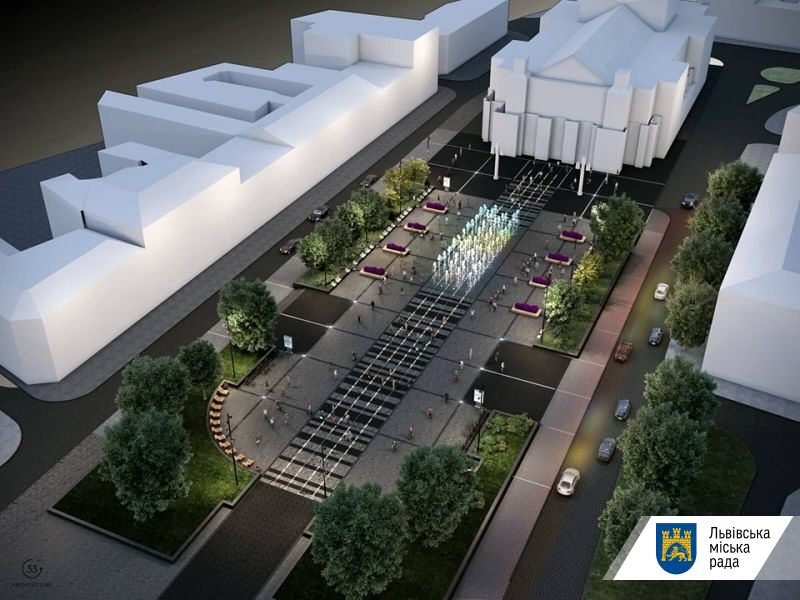 «Відбувався архітектурний конкурс і рішення, якою має бути площа перед Оперним театром, було знайдено в рамках конкурсу. Вся площа символічно буде оформлена у вигляді скрипки. Після робіт площа набуде цілісного вигляду, де основним об’єктом є театр. На площі облаштують новий фонтан. Існуючий демонтують. Особлива увага буде приділена місцям для перебування людей — буде облаштовано лавки вздовж пр. Свободи, а інтенсивний рух буде мінімізовано за допомогою нових елементів благоустрою та додаткових зелених насаджень.