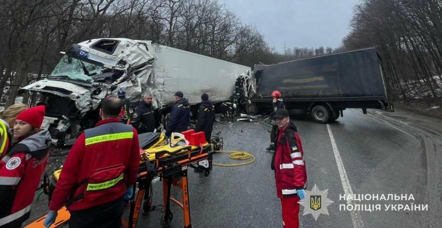 Як повідомили у Поліції Львівської області, на автодорозі лоб у лоб зіткнулися вантажівки Volvo та MAN. За кермом Volvo перебував 30-річний житель області, а MAN керував 59-річний мешканець Дніпропетровщини.
