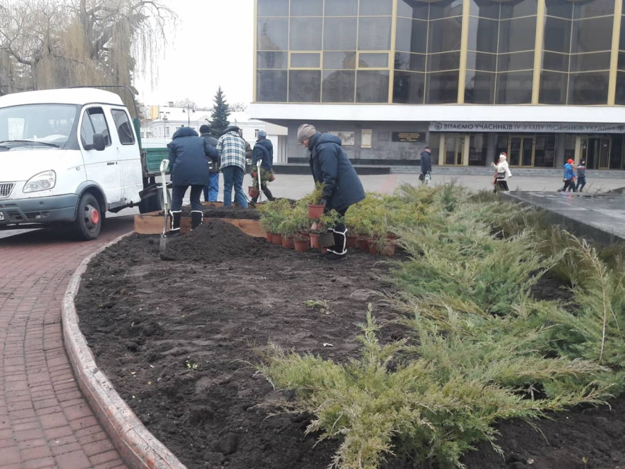 У Луцьку на Театральній площі лісники самовільно висаджували рослини довкола пам’ятника Лесі Українки на один день, а потім знову викопали.
