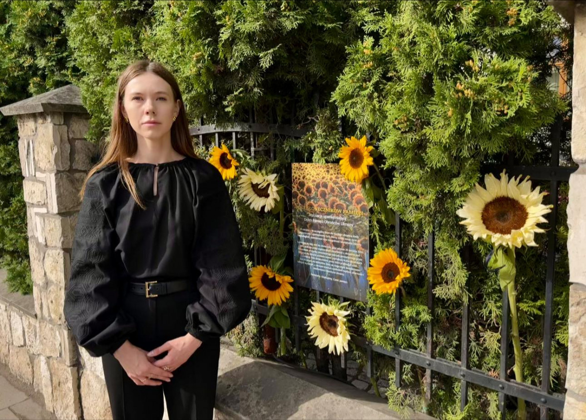 «Поле соняхів пам’яті» - інсталяція із 29-ти живих квітів соняшника до Дня пам’яті захисників України у Генеральному консульстві України в Кракові.