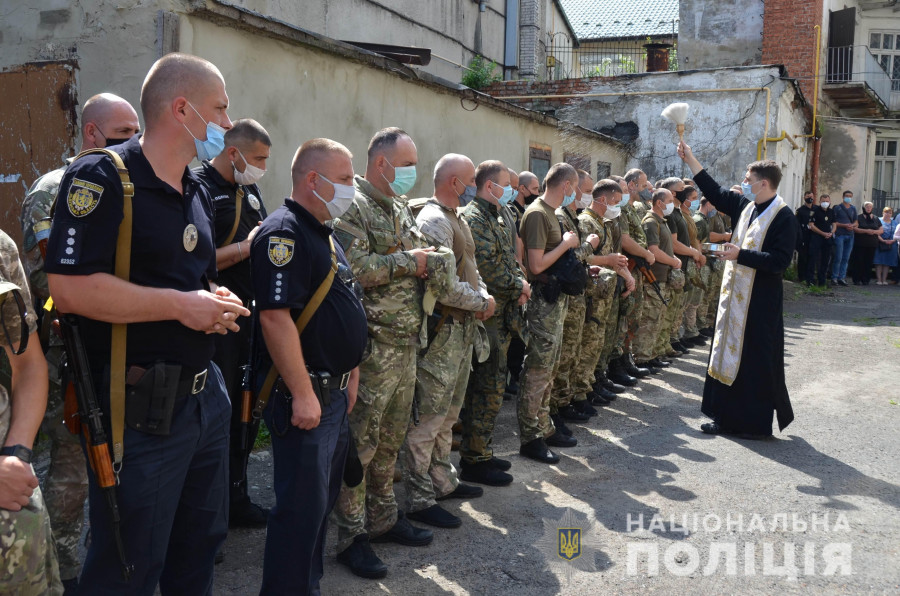 Бійців проводжали родичі, друзі, товариші по службі, а також начальник Головного управління поліції полковник поліції Василь Віконський.