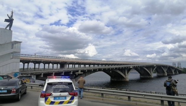 Раніше КМДА повідомила, що на мосту Метро стоїть чоловік з пакетом і погрожує підірвати споруду.