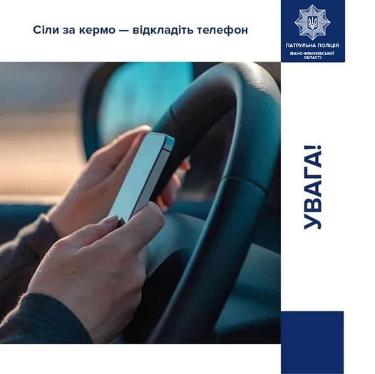 Правоохоронні органи України нагадують водіям про небезпеку використання мобільних телефонів під час керування транспортними засобами та закликають дотримуватися правил дорожнього руху задля збереження життя та здоров'я всіх учасників дорожнього руху.