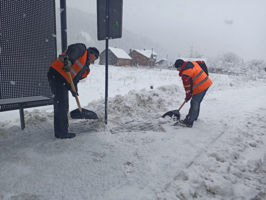 Понад 60 дорожників на Львівщині вручну розчищають громадські зупинки і знаки від снігу