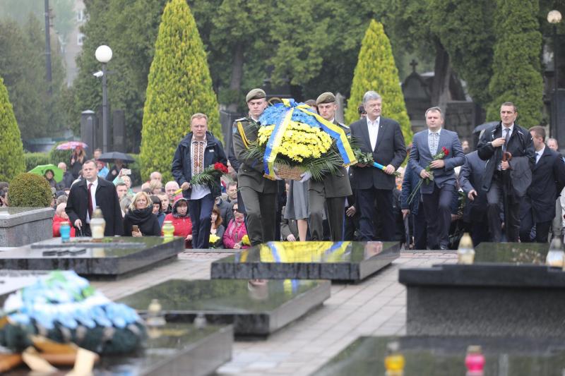 Петро та Марина Порошенки вшанували пам’ять та поклали квіти до могил героїв на Личаківському цвинтарі у Львові.