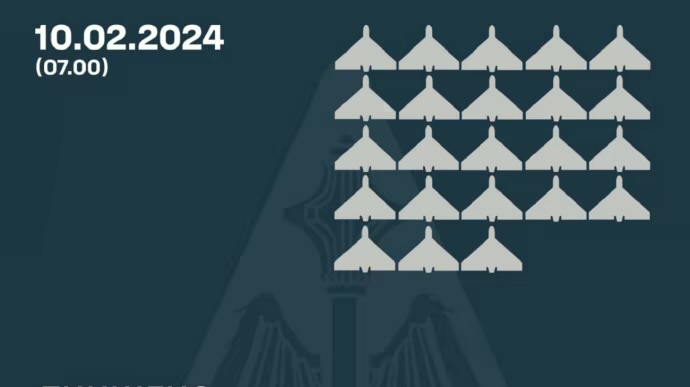 У ніч на 10 лютого противник атакував 31 ударним БпЛА типу "Shahed-136/131". Збити вдалося 23 безпілотники.