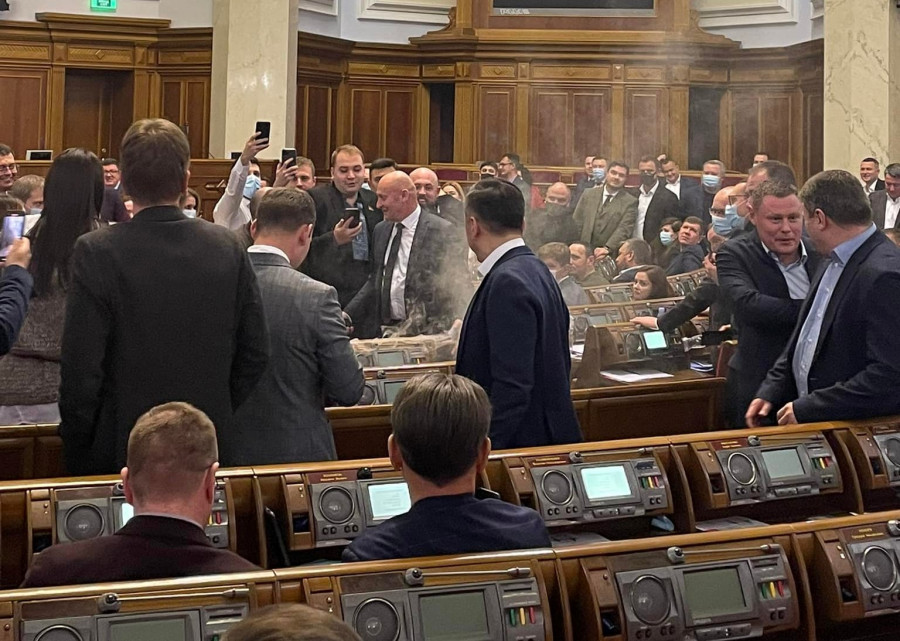 Потім нардепи підтримали пропозицію про завершення засідання через "неможливість народним депутатам перебувати у сесійному залі через задимлення".