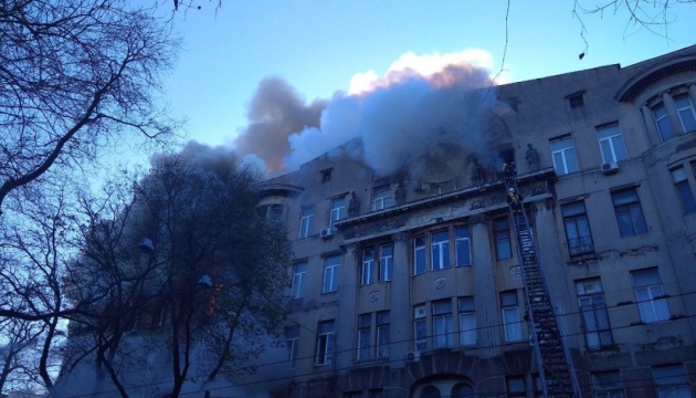 Державна служба надзвичайних ситуацій повідомляє, що станом на 12:49 в результаті пожежі в Одеському коледжі економіки, права та готельно-ресторанного бізнесу постраждали 13 осіб, з них 5-ро вогнеборців.
