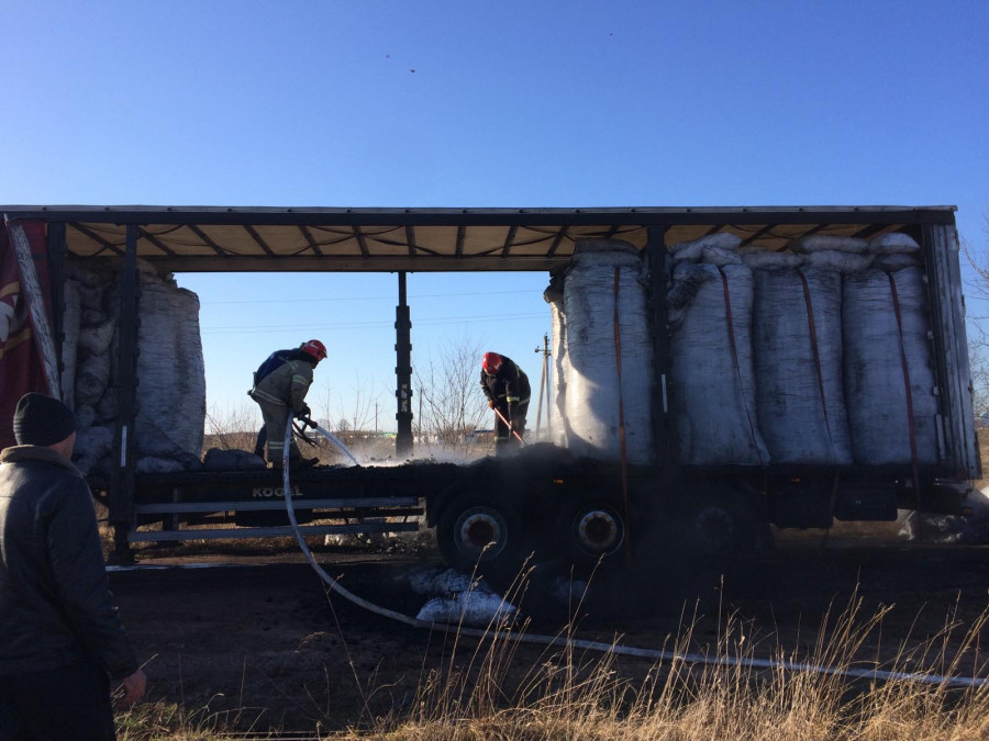 Загорання сталось в середині причепа. Загорілось вугілля.
